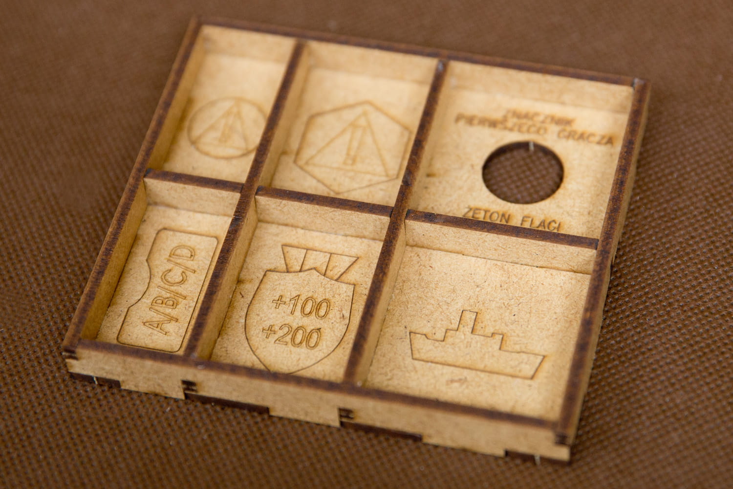 Cena obejmuje elementy insertu do samodzielnego sklejenia. Insert wykonany jest z HDF-u o grubości 3 mm, nie jest malowany. Do sklejenia wymagany jest klej WIKOL, który możesz kupić tutaj. Komponenty gry przedstawione na zdjęciach nie wchodzą w skład sprzedawanego zestawu. Produkt może różnić się kolorystycznie od widocznego na zdjęciach – zależy to od partii HDF-u.