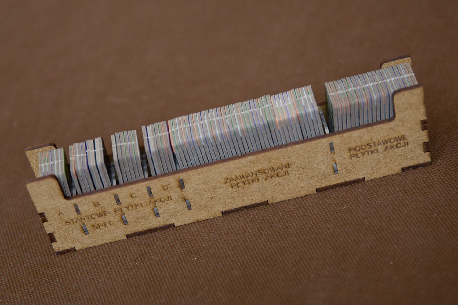 - 1 pojemnik na Płytki Akcji Podstawowych, Płytki Akcji Zaawansowanych, Startowe Płytki Acji (A / B + Płytki dla Eksperymentu B / C / D),
