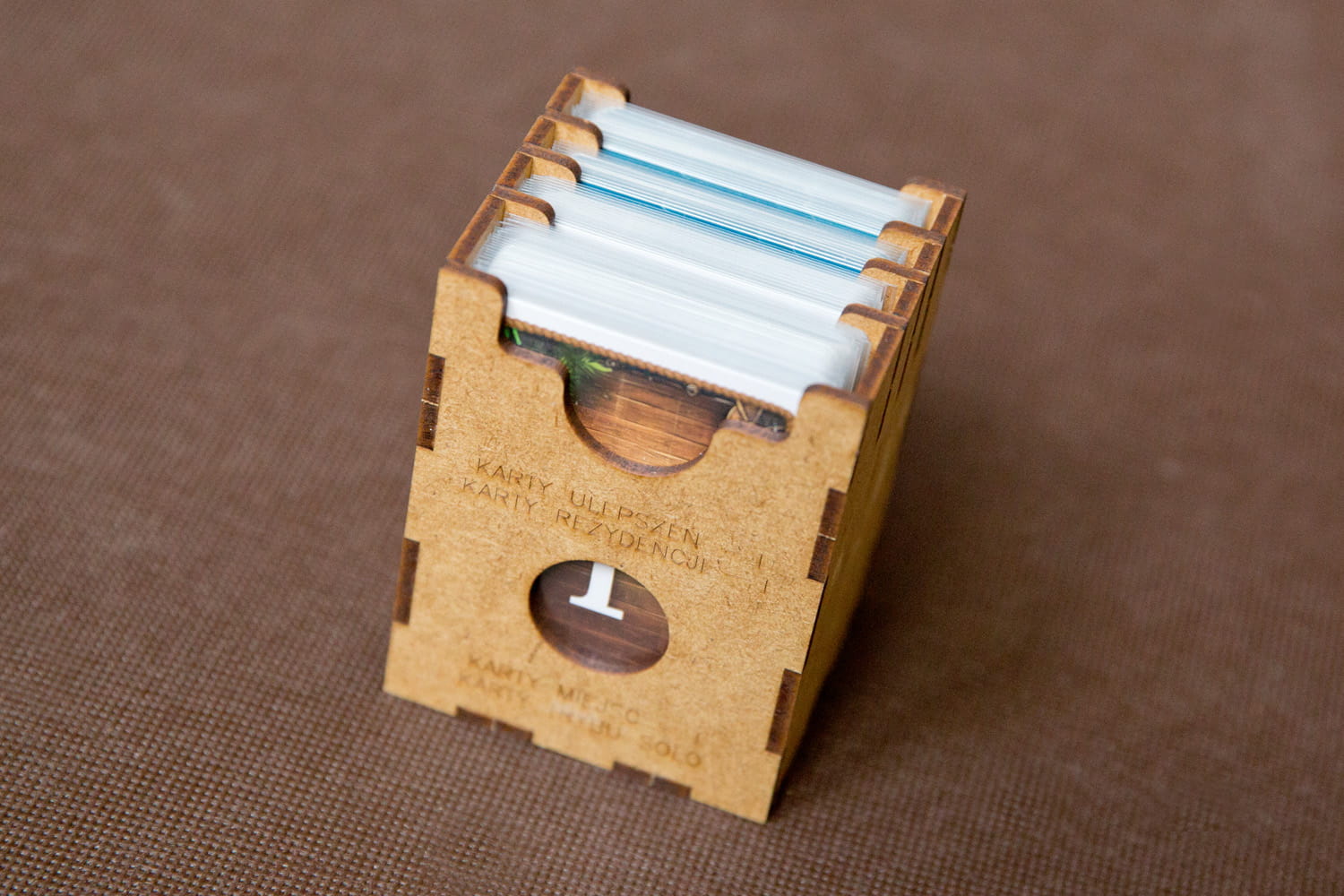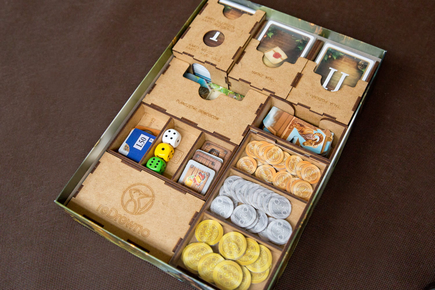 - 1 pojemnik sortujący karty poziomu I (ulepszeń , rezydencji, miejsc), karty trybu solo,