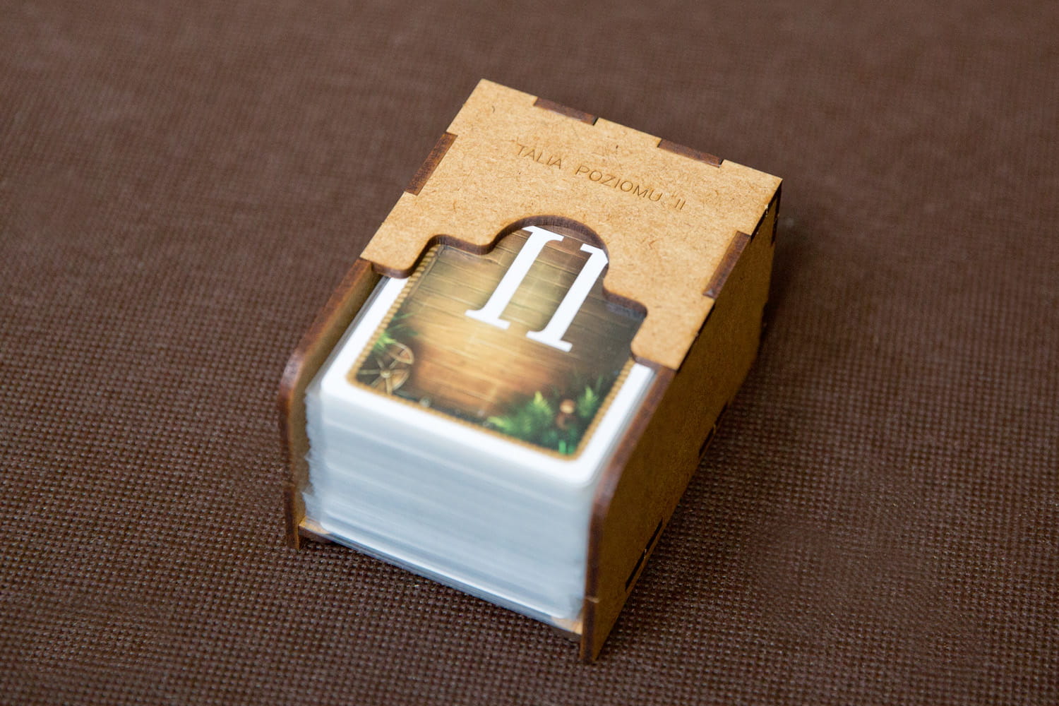 - 2 pojemniki na karty zadań i karty poziomu II stanowią podajniki na karty do wyłożenia na stół,