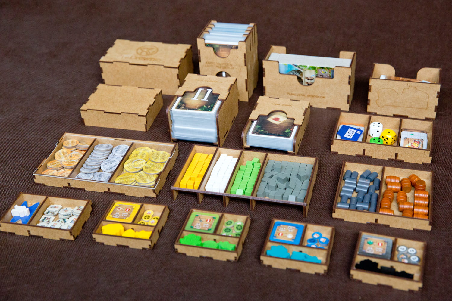 - oddzielne pojemniki na elementy używane tylko podczas przygotowania rozgrywki i oddzielne na elementy używane w trakcie niej,