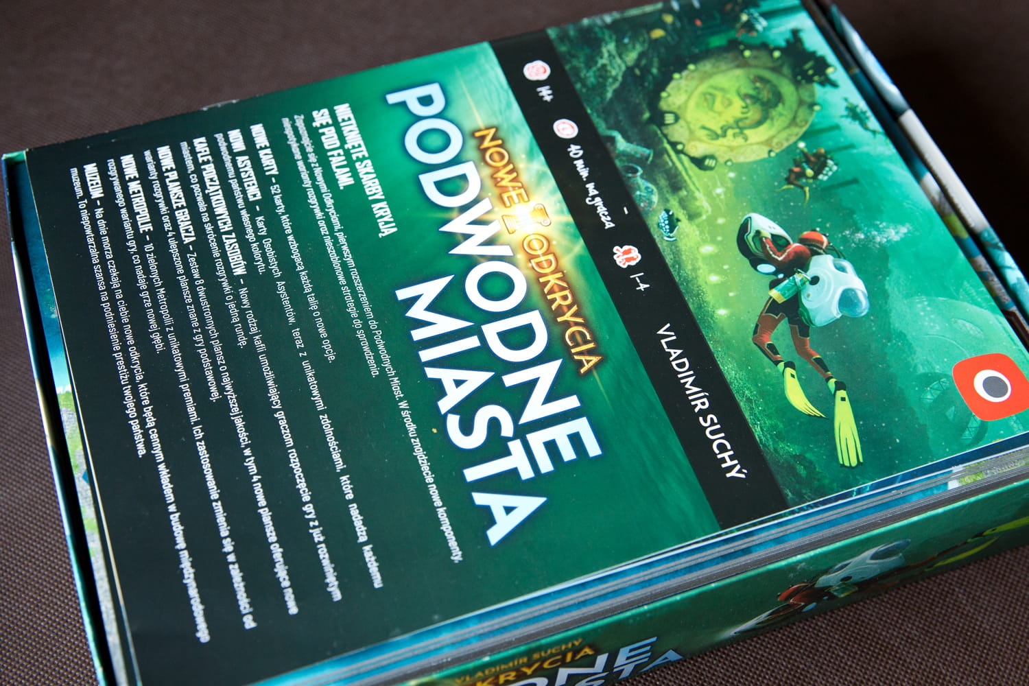 Insert pasujący do gry Podwodne Miasta z dodatkiem Nowe Odkrycia oraz kartami promo (dostępnymi w sklepie Portal Games). Pudełko zamyka się bez uniesienia wieka.