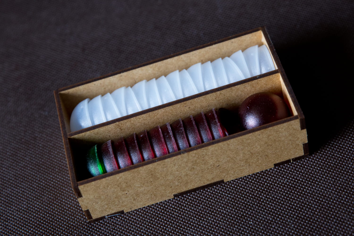 - pojemniki na żetony stanowią tacki do wyłożenia na stół (pomagają utrzymać ład na stole),