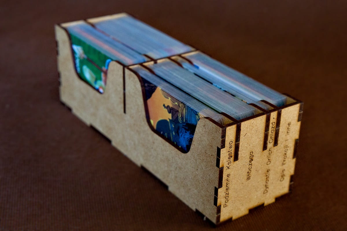 - podajnik na karty, pojemniki frakcji oraz na żetony posiadają zasuwki z pleksi – takie rozwiązanie pozwala utrzymać porządek w pudełku podczas transportu,