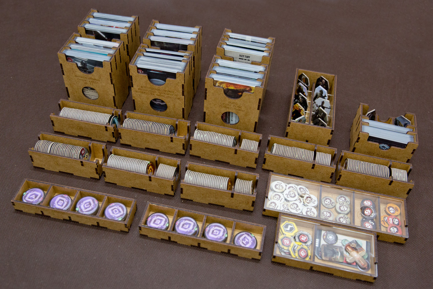- pojemniki na żetony i znaczniki pomagają utrzymać ład na stole,