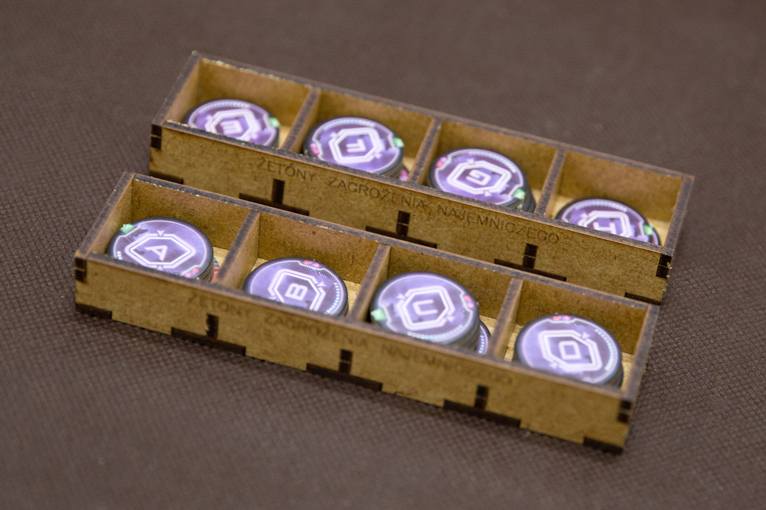 - pojemniki na żetony zagrożeń umożliwiają odłożenie/odseparowanie eksperckich żetonów zagrożeń,