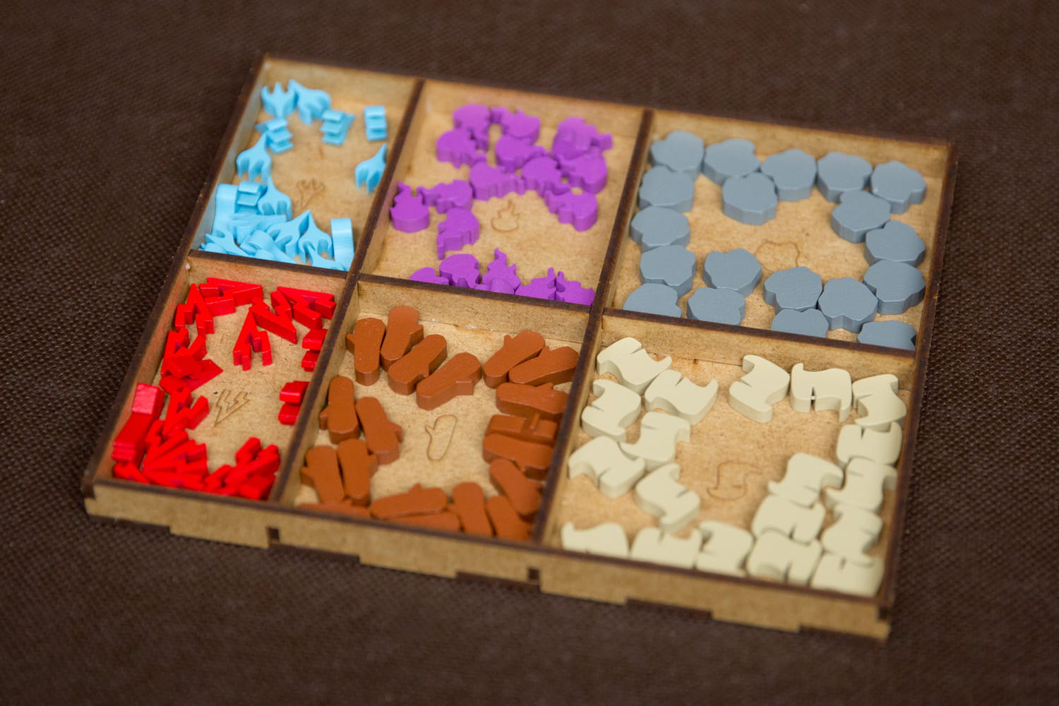 - pojemniki posiadają grawery ułatwiające porządkowanie elementów gry.