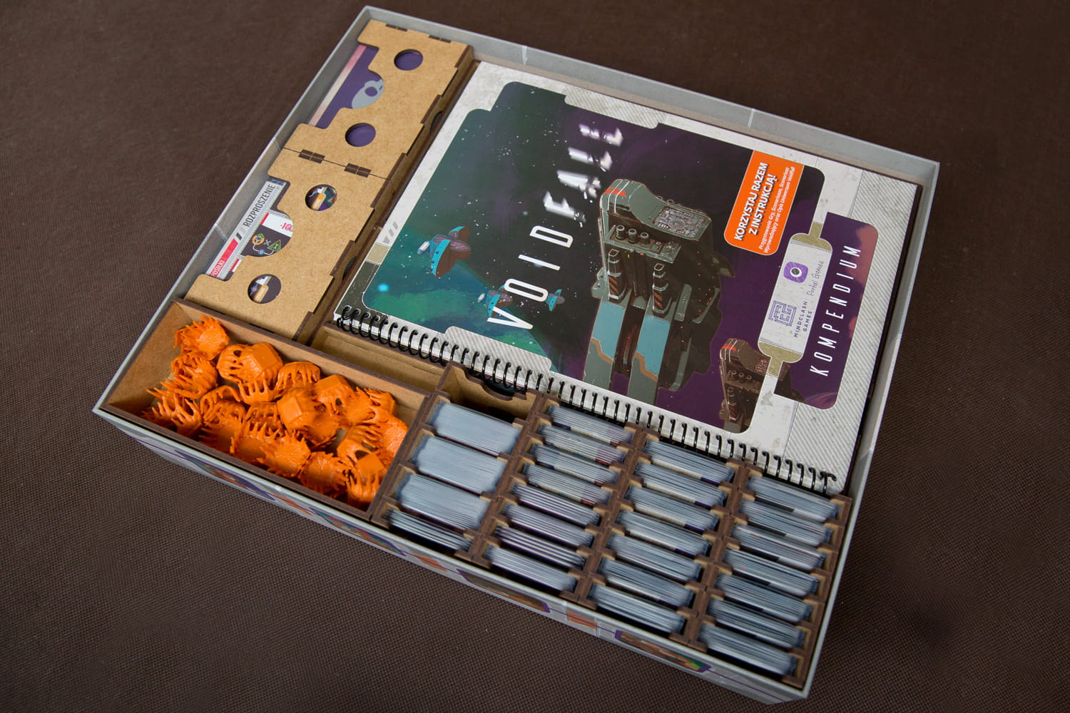 Insert pasujący do strategicznej gry Voidfall. Pudełko zamyka się całkowicie. Insert mieści karty w koszulkach klasy Premium do 110 mikronów. Na zdjęciach karty w koszulkach Gamegenic (100 mikronów).
