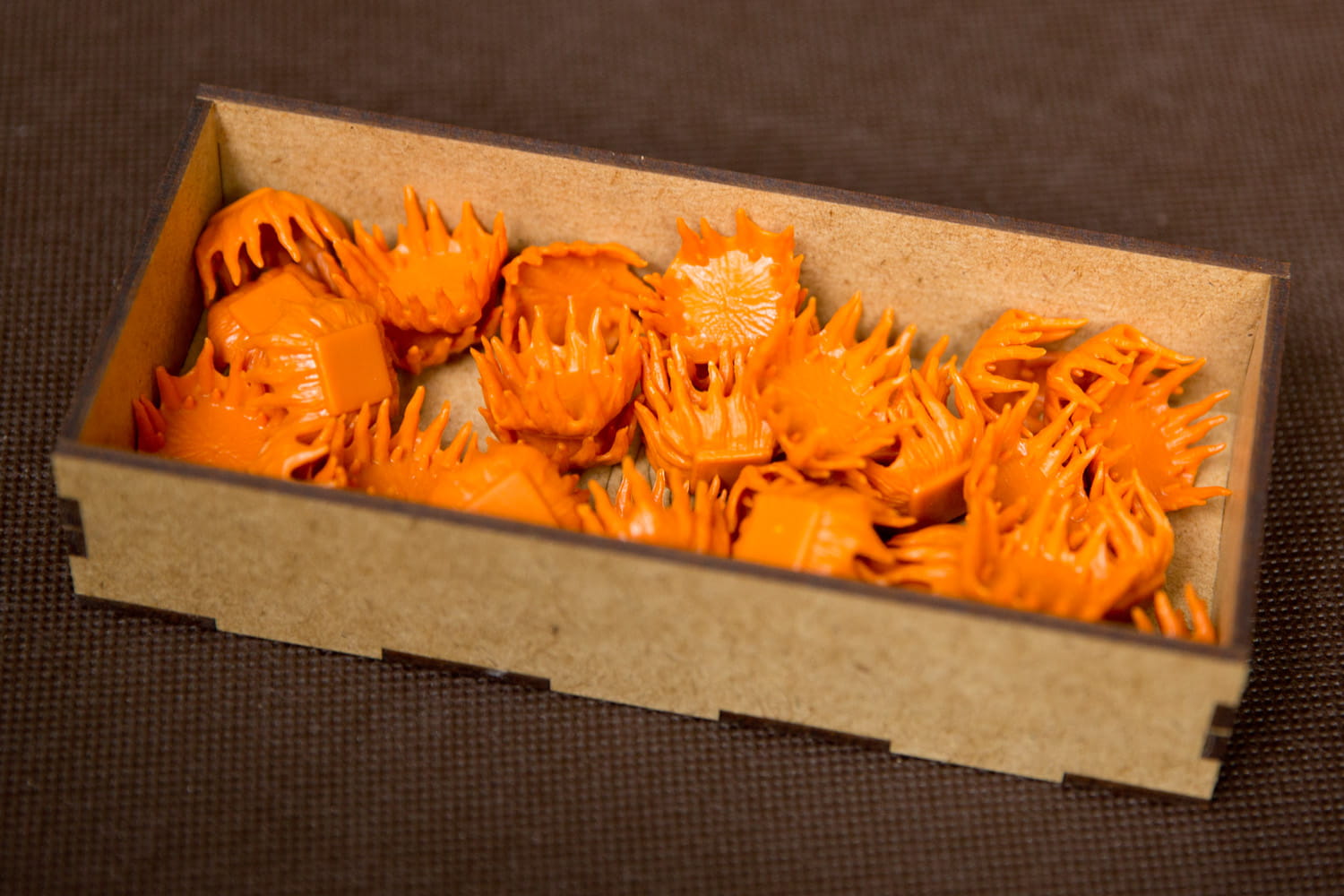 - 1 pojemnik na kostki Siły Floty Zrodzonego z Pustki oraz na kości Populacji,