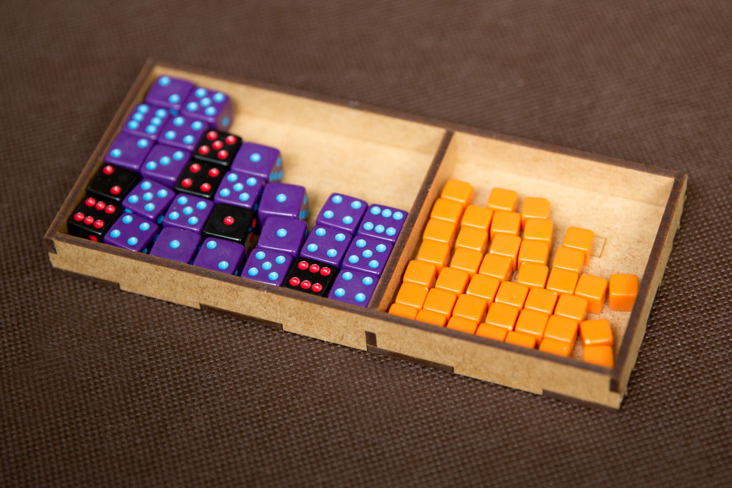 - pojemniki na żetony i znaczniki pomagają utrzymać ład na stole,