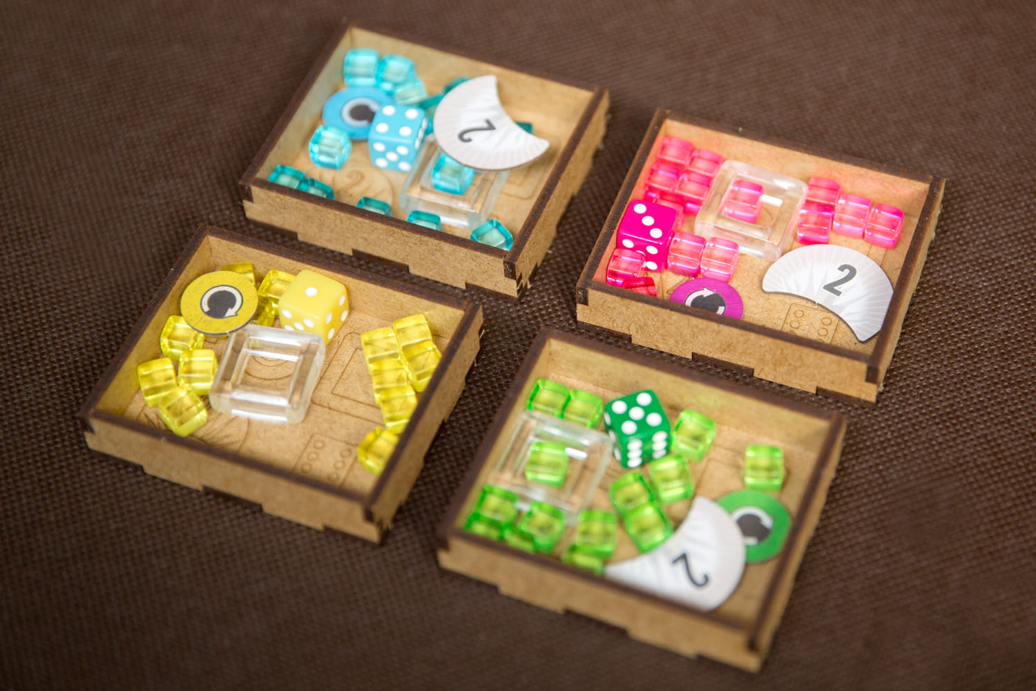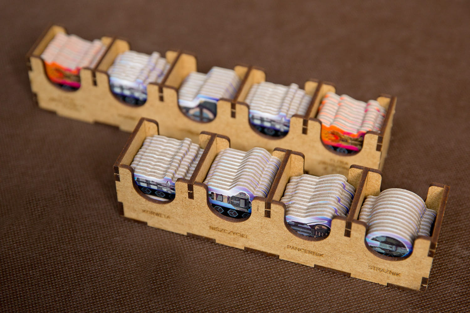 - oddzielne pojemniki na elementy używane tylko podczas przygotowania rozgrywki i oddzielne na elementy używane w trakcie niej,