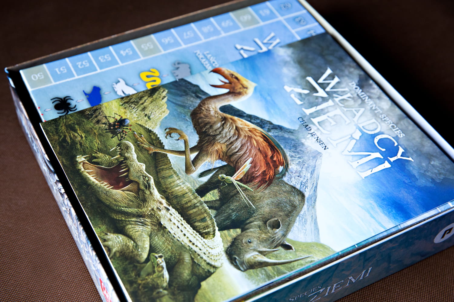 - pojemnik na karty posiada dwie komory pozwalające na wygodne przechowywania oddzielonych 6 kart od głównej talii (karty skracające rozgrywkę nr 16, 18, 23, 24, kartę Epoka Lodowcowa i kartę Przetrwanie).