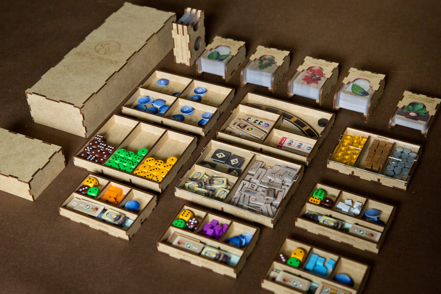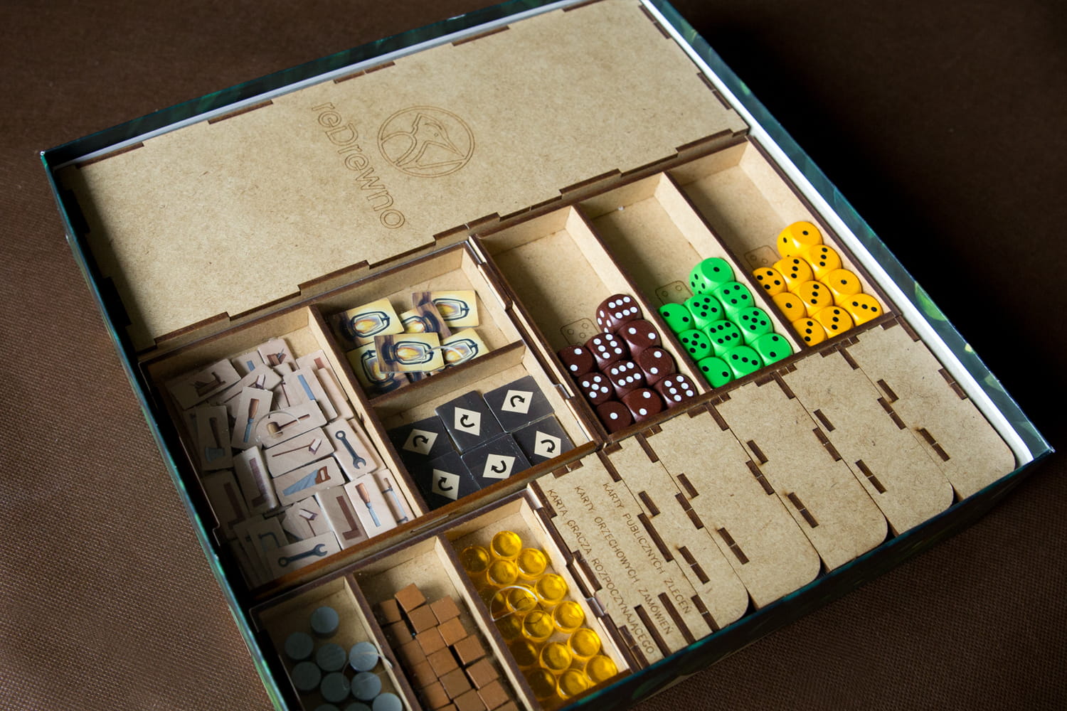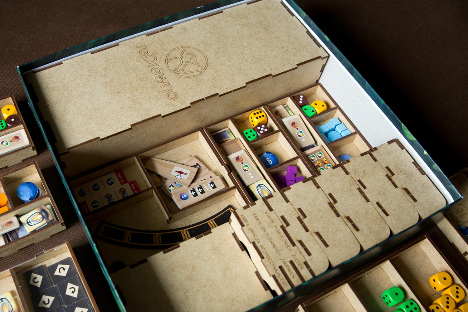 Insert jest przygotowany w formie "otwórz, wyłóż na planszę, graj" - przygotowaliśmy dla Was następujące pojemniki, które wyłożycie na stół po otwarciu pudełka: