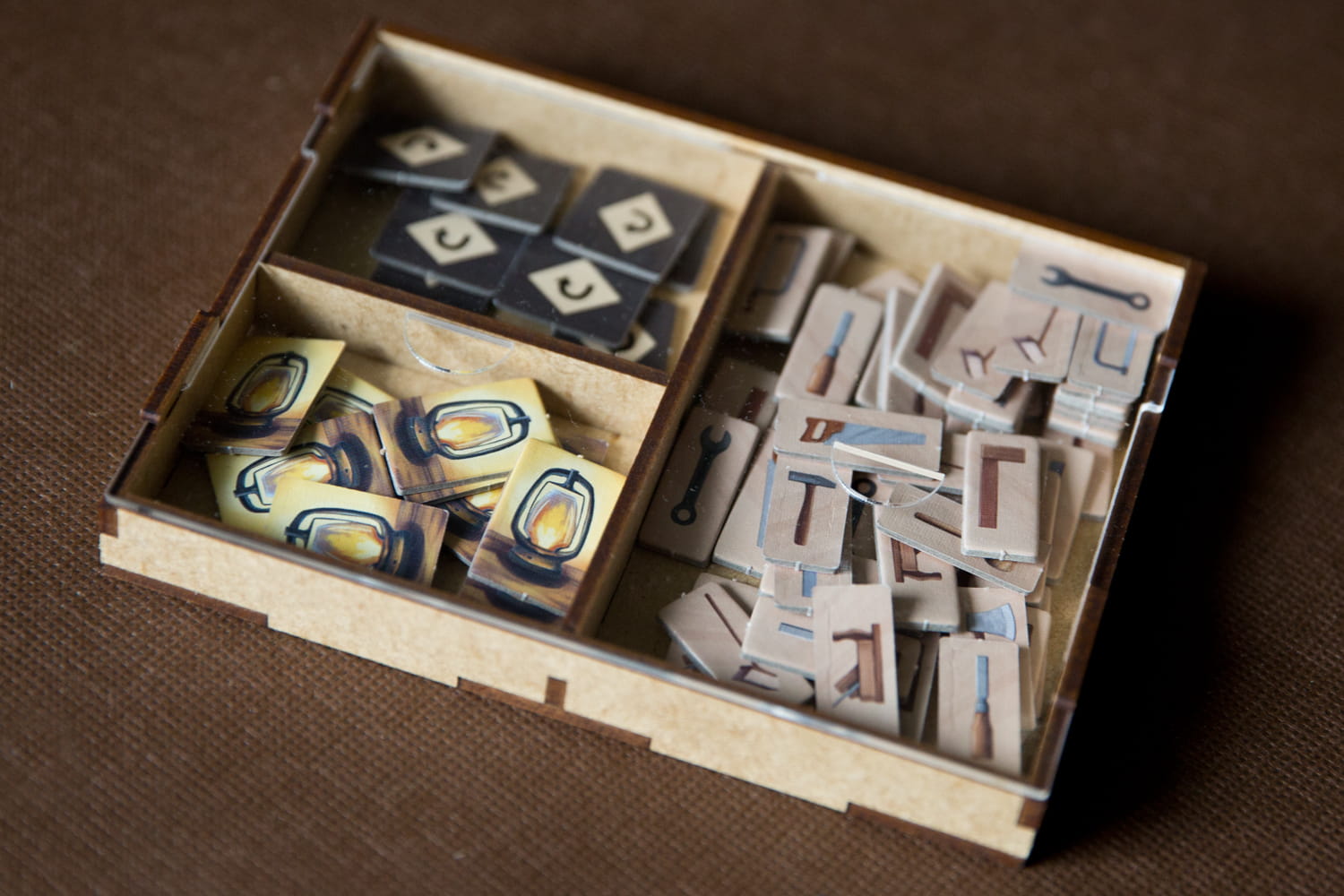 - pojemniki / tacki na znaczniki Ostrza Piły, Kleju, Ścinek oraz żetony ponownego użycia kafelka, Lampionów, Narzędzi.