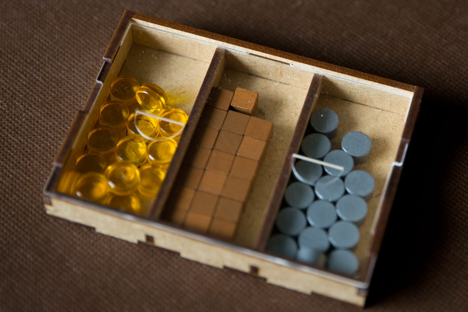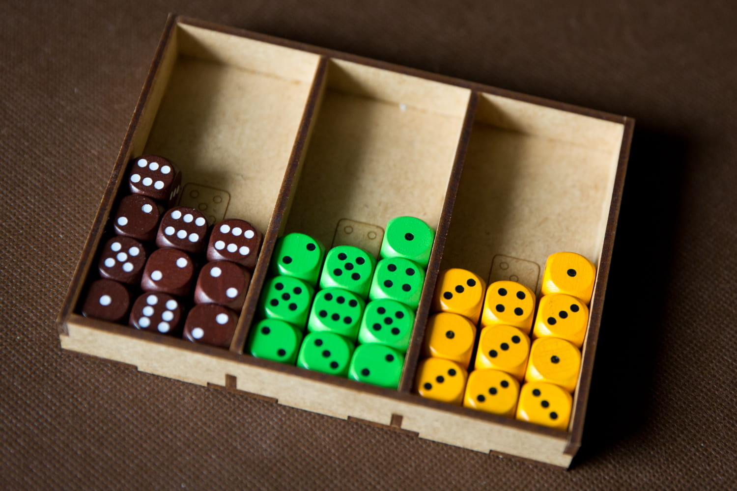 - pojemniki na żetony i znaczniki pomagają utrzymać ład na stole,