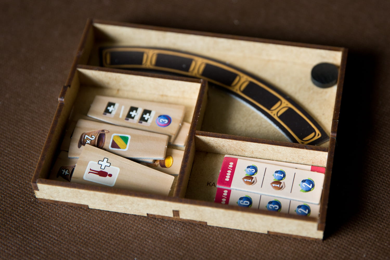 Cena obejmuje elementy insertu do samodzielnego sklejenia. Insert wykonany jest z HDF-u o grubości 3 mm, nie jest malowany. Do sklejenia wymagany jest klej WIKOL, który możesz kupić tutaj. Komponenty gry przedstawione na zdjęciach nie wchodzą w skład sprzedawanego zestawu. Produkt może różnić się kolorystycznie od widocznego na zdjęciach – zależy to od partii HDF-u.
