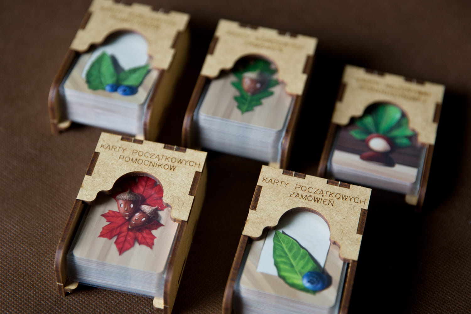 - 1 pojemnik segregujący karty Publicznych Zleceń, Orzechowych Zamówień, Gracza Rozpoczynającego,