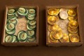 - 5 tacek - na monety, kompasy, groty strzał, klejnoty i tabliczki.
