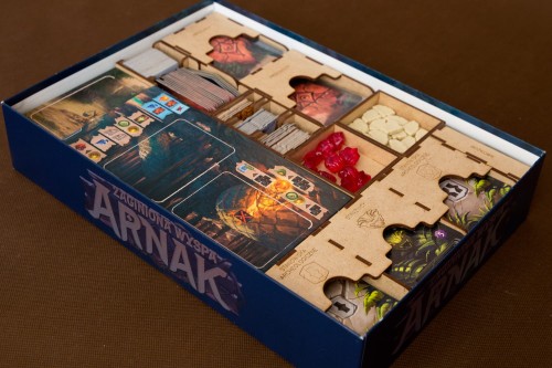 Insert do gry strategicznej Zaginiona Wyspa Arnak. Insert pomieści również dodatek Przywódcy Ekspedycji. Jeżeli nie masz dodatku to nie musisz się martwić - w insercie są dodatkowe elementy wypełniające wolną przestrzeń. Insert mieści karty w koszulkach klasy Premium o grubości do 110 mikronów. Na zdjęciach karty w koszulkach Rebel Premium (90 mikronów).