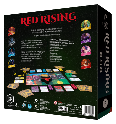 “Red Rising to jedna z moich ulubionych serii książkowych. Z Pierce’em Brownem skontaktowałem się w sprawie praw do gry planszowej już lata temu. Wtedy nie były one jeszcze dostępne. Mimo to rozpocząłem wieloletni proces kolejnych nieudanych prób zaprojektowania gry i przyjmowania projektów napływających z zewnątrz, by taką grę stworzyć. Wreszcie prace doprowadziły do przebłysku geniuszu, kiedy ja i Alex graliśmy pewnego wieczoru w Fantastyczne Światy. A potem już nasza wspólna praca, testowania ze wsparciem Stonemaier Ambassadors i nieustający kontakt z Pierce’em i jego ekipą. Ta gra to moje marzenie i jestem niezmiernie podekscytowany, że mogę się z Wami nią podzielić.” - Jamey Stegmaier