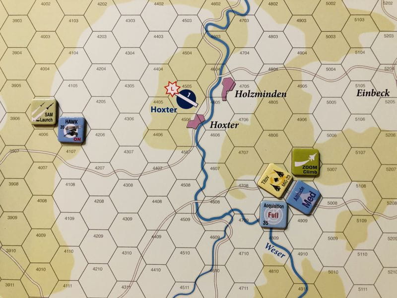 As the NATO player, you fight outnumbered in the air, but with a qualitative edge in technology and better-trained pilots. NATO faces the daunting task of contesting the air in the face of the initial onslaught from the WP air forces while also getting bombs onto targets on the ground both on the frontline and rear echelon forces of the Soviet and East German armies. As the Warsaw Pact player, you must push your numerous but less flexible forces to the absolute limit in an effort to overwhelm NATO forces in the air and destroy them on the ground, all while supporting advancing ground forces. Both players also have to manage their air defense networks consisting of overlapping layers of SAM and AAA.