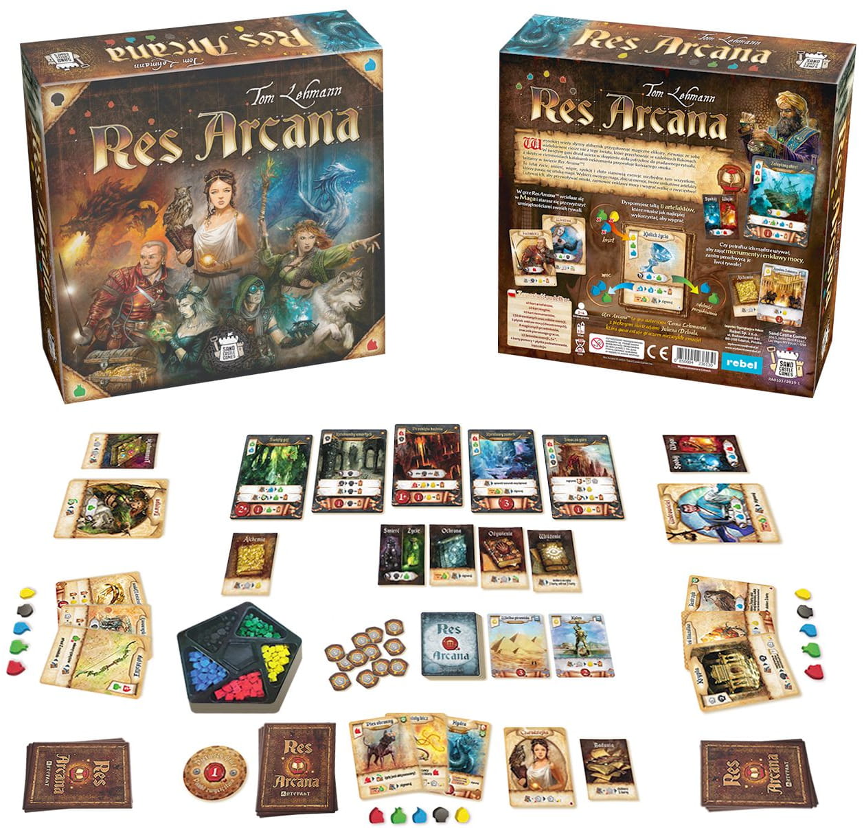 Niezbyt z początku przystępna i klimatycza jedynie w ilustracjach gra w budowanie silnika. Za pomocą ośmiu i tylko ośmiu kart (niekoniecznie wszystkie zostaną zagrane w danej partii) tworzymy tu silnik do wytwarzania surowców (żywiołów), dzięki którym kupujemy monumenty i enklawy mocy, które z kolei mają dać nam punkty zwycięstwa. Gra jest mocno abstrakcyjna i dużo tu ikon, które z początku niewiele mówią. Res Arcana jest wymagającym i ciekawym tytułem, zmuszającym gracza do kombinowania i szukania powiązań między kartami, nawet takich, których z początku może nie być widać. Przy odpowiednim ograniu z kartami rozgrywka jest szybka i dynamiczna - tylko jeden ruch na turę. Wydanie jest świetne, z praktycznym pudełkiem na komponenty, przemyślaną wypraską i wysokiej jakości kartami i planszetkami. Mocno polecam, jeśli ktoś lubi trochę mentalnej gimnastyki przy stole.