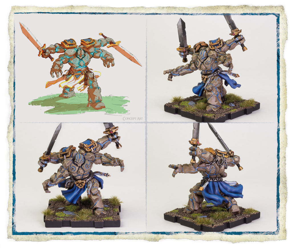 Deep within the ancient fortresses of Terrinoth stand ancient stone guardians, ever vigilant. Only awakened by Lords and Wizards who know the secrets that can imbue the golems with life when the need is dire. The strength and ferocity of these golems knows no equal, scything their massive blades through infantry and cavalry with ease. Rune Golems will stop at nothing to destroy the enemies of the Daqan, and then return to their hidden slumber until called upon again.