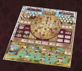 Sabika implements a novel mechanism that integrates three interrelated rondels. Each rondel focuses on a different scenario: the construction of the Alhambra, the carving of poems in its halls, and the export of goods along the trade routes. All of this takes place over five eras (rounds), and at the end of the fifth round, the player who has accumulated the most prestige points takes the victory.