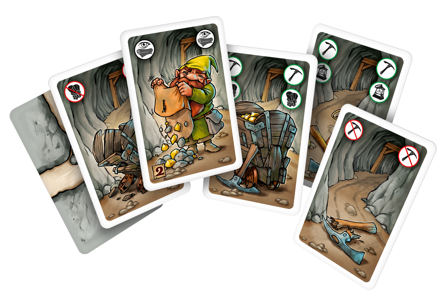 Zawarte w pudełku rozszerzenie Sabotażysta 2 wprowadza karty, które zmieniają nieco nasze możliwości i zasady rozgrywki. Główny cel pozostaje jednak ten sam: zwycięży osoba, która zgromadzi najwięcej bryłek złota!