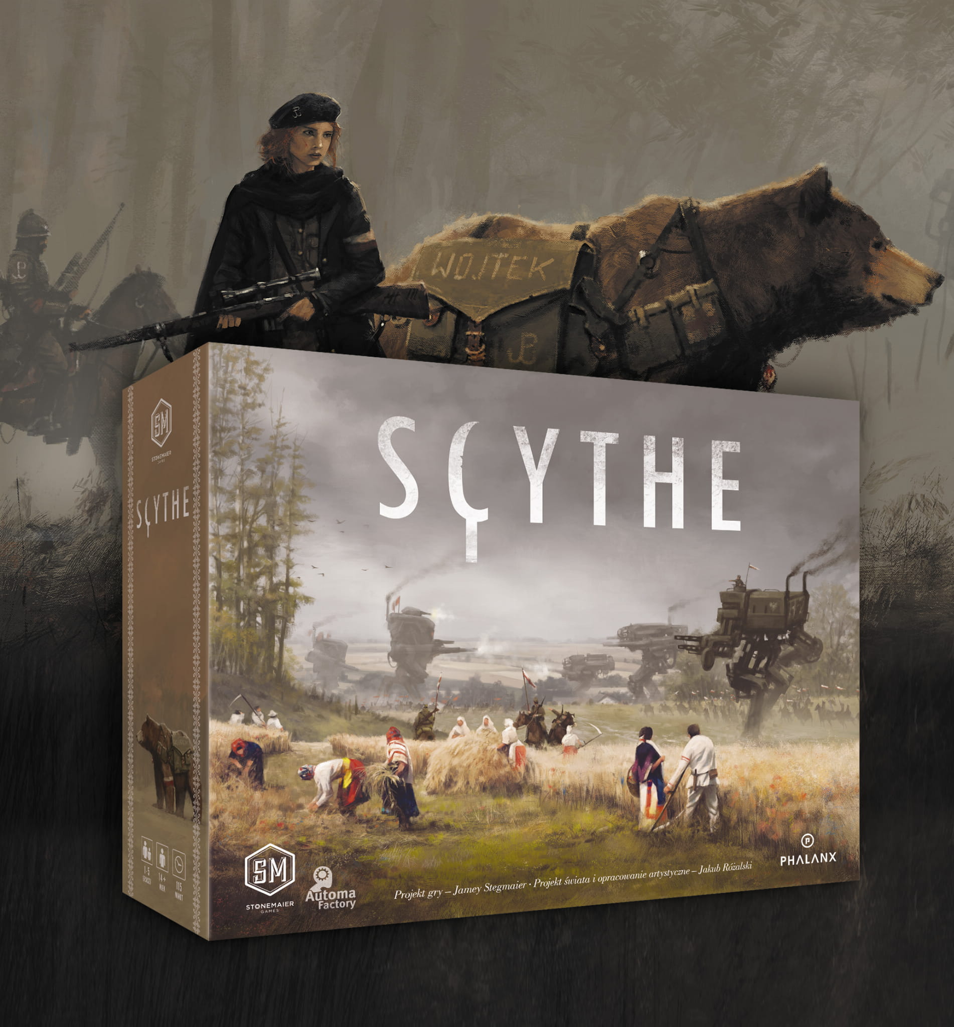 Scythe to strategiczna gra planszowa dla 1-5 graczy, w której wcielisz się przywódcę jednego z narodów Europii Wschodniej w alternatywnej rzeczywistości lat 20. ubiegłego stulecia. Będziesz odkrywał i podbijał kolejne terytoria. Będziesz werbował nowych rekrutów i gromadził surowce. W końcu będziesz wysyłał do walki siejące postrach bojowe mechy, którymi zmiażdżysz innych graczy. A to wszystko dla chwały, sławy i pieniędzy. Bowiem zwycięzcą gry zostanie gracz z największą liczbą zgromadzonych monet. Zdobędziesz ich tym więcej, im większa będzie twoja popularność, im bardziej rozwinięte będzie twoja armia, a także im więcej terenów i zasobów będziesz kontrolował. Planuj, podbijaj, zwyciężaj!