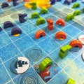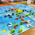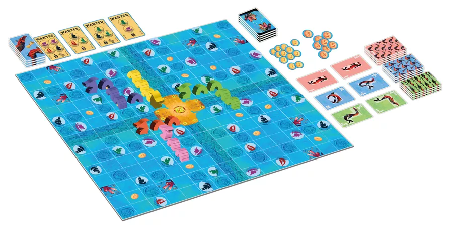 In the game, each participant plays as a family of sea dragons who are seeking to become the protectors of the forbidden seas. Each turn, one of the two pattern cards from the hand will be played to position a sea dragon on the board, increasing your presence in all four sea kingdoms. You will be able to sink ships or collect treasures hidden in the ocean. Optionally you can complete missions with the ships that you are sinking. Note that you cannot place your own sea dragons next to each other, and if you place one next to another player's dragon, they receive treasures.