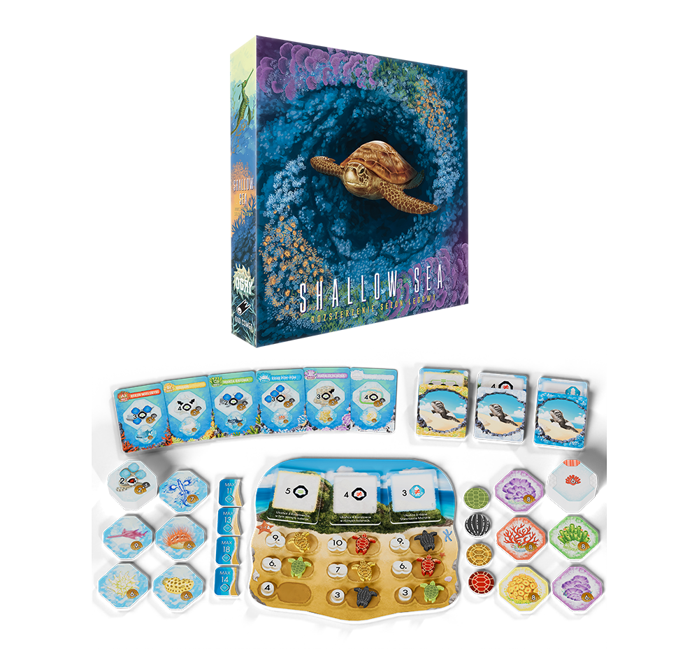 W tym rozszerzeniu do gry Shallow Sea natura budzi się do życia jak nigdy dotąd! Sezon Lęgowy wprowadza dodatkową planszę - Wyspę Żółwi – unikalny obszar, do którego migrują morskie żółwie. Te majestatyczne stworzenia nie tylko wpływają na rozgrywkę, ale także oferują nowe możliwości punktacji i interakcji między graczami.