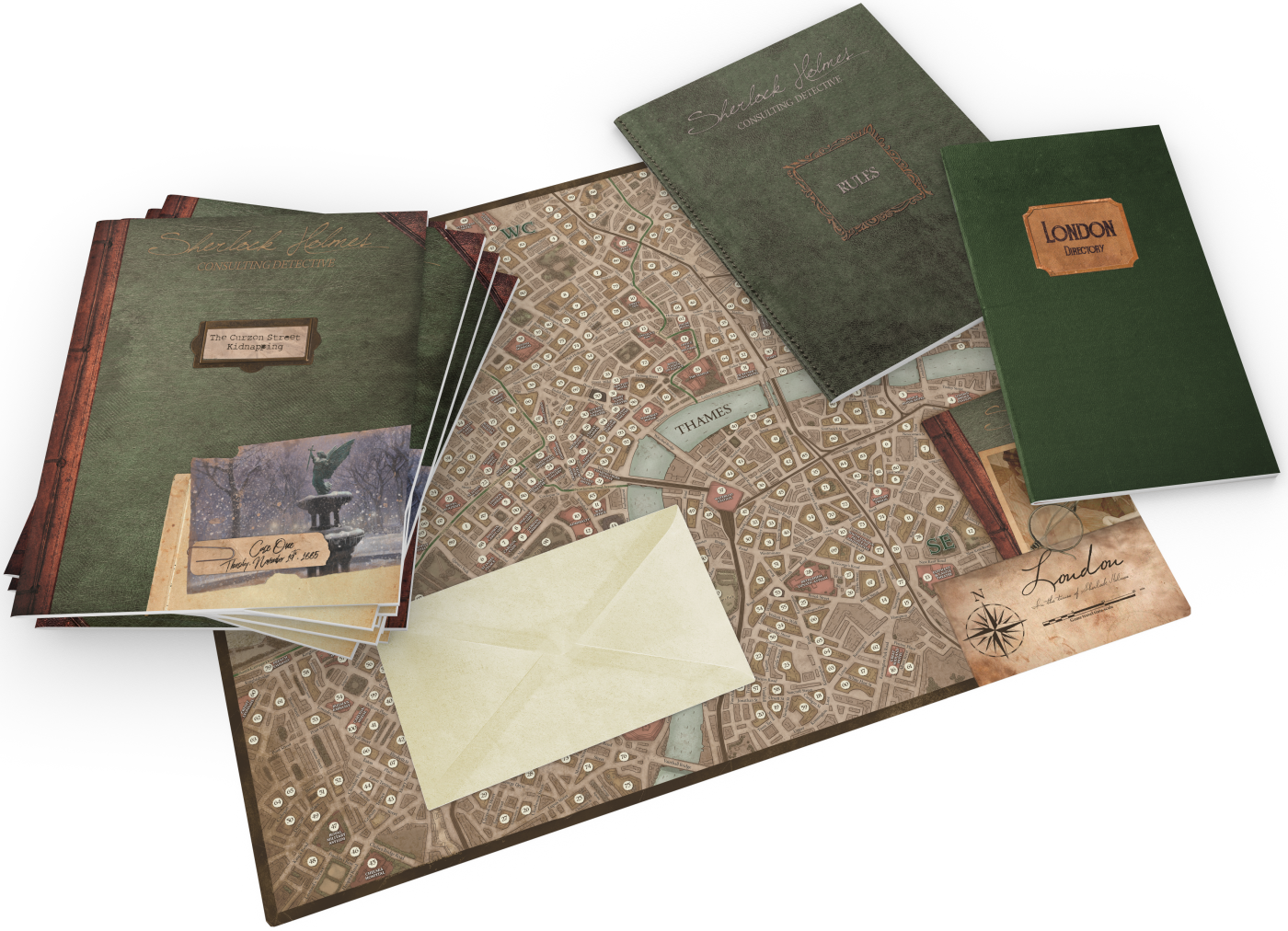 Sherlock Holmes Consulting Detective is a cooperative game where the players try to solve mysterious cases by walking the foggy London streets in search of clues. Unravel the thread of intrigue, answer a series of questions, and compare your detective skills to those of the master sleuth himself, Sherlock Holmes.