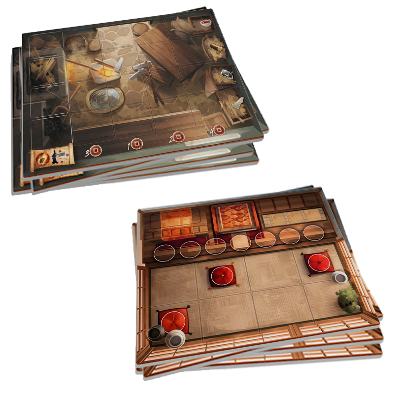 You will have to manage your Forge wisely, as crafting Katanas will be the real beating heart of the game. The original and innovative sword-making mechanism allows you to activate an entire row or column to work on different Katanas at the same time. Each player has its own forge where all the katana crafting will take place.