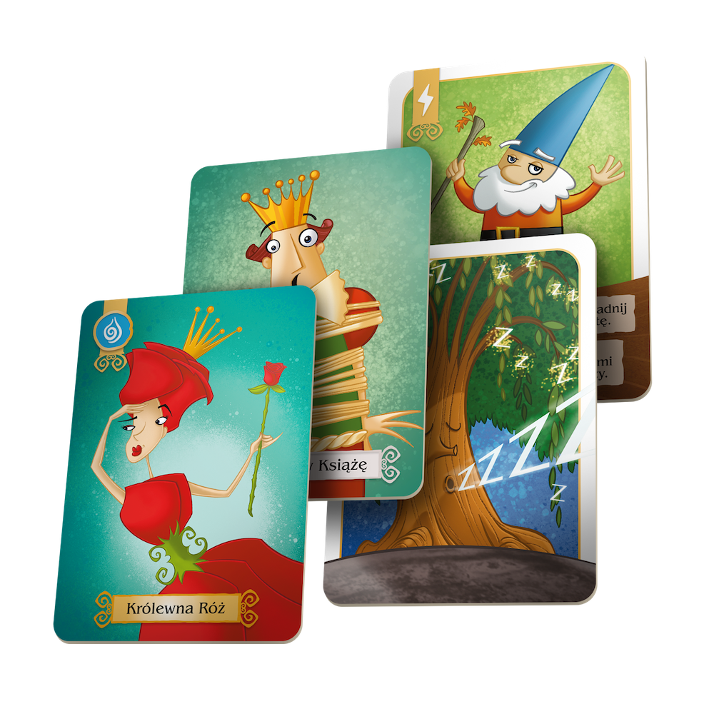 - Wykonanie akcji z wyłożonych kart. Zebranie odpowiednich zestawów pozwoli dobierać cenne karty pomocników, budzić uśpione królewny i ratować książąt.