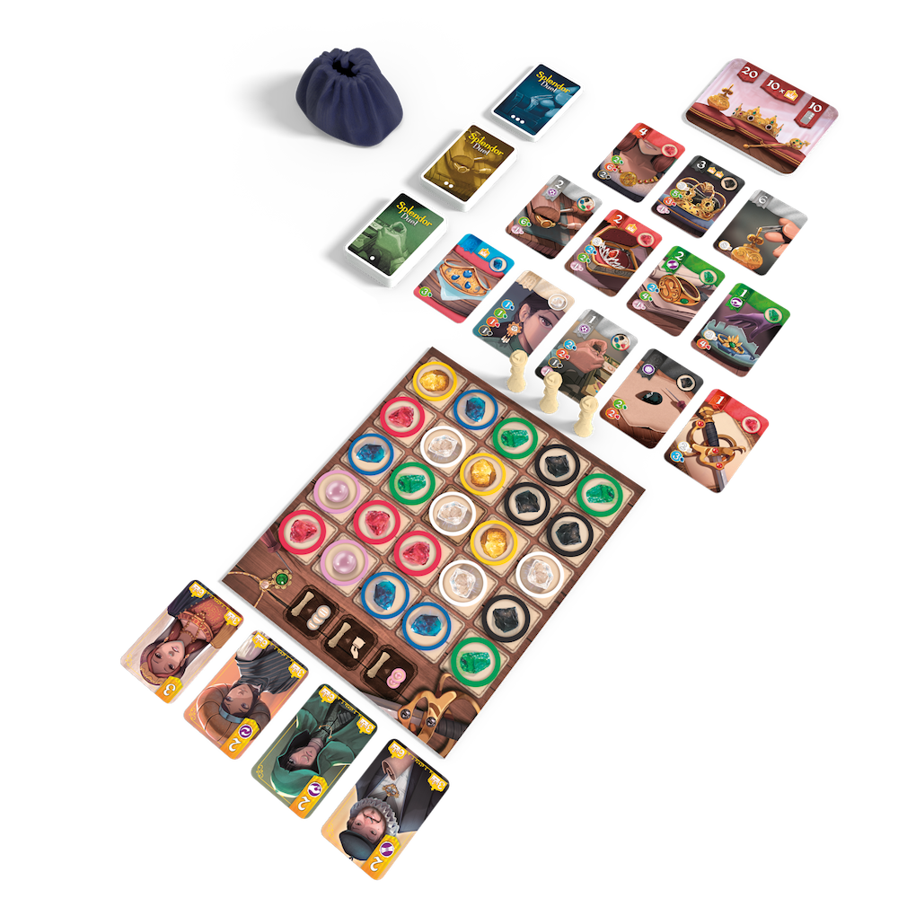 - Specjalna plansza, na której wykładamy znaczniki klejnotów oraz związane z nią dodatkowe zasady sprawiają, że także ten element gry nabiera strategicznego charakteru. Od teraz nie tylko możemy podbierać przeciwnikowi potrzebne kolory, ale też ograniczać jego możliwości w ich łączeniu!