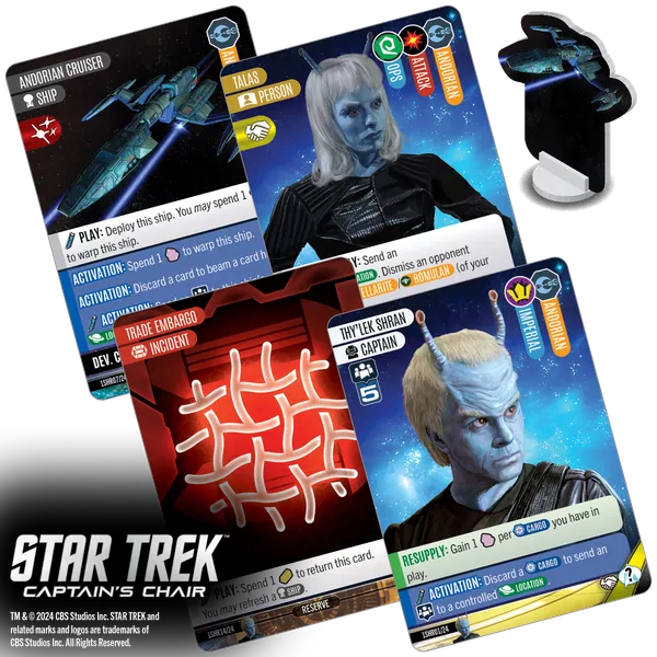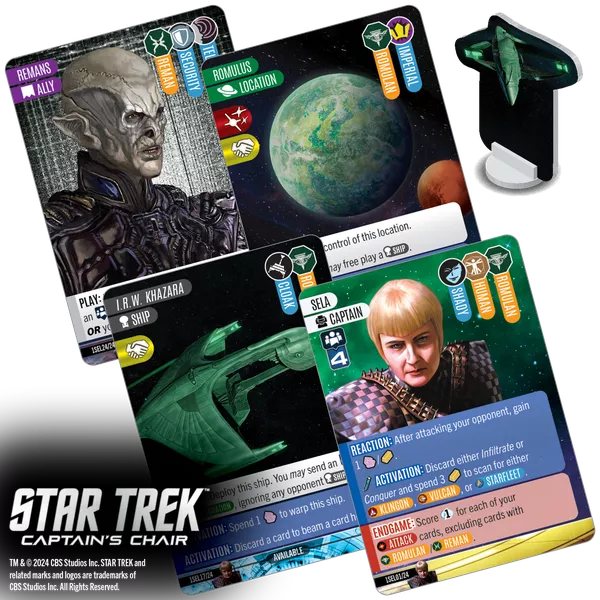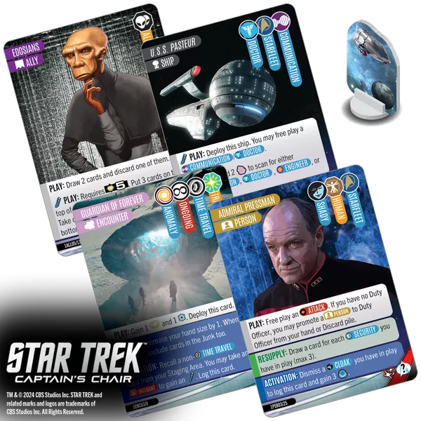 True to Star Trek, antagonism will not win every game. You will need to pursue diplomacy, exploration, and science, with different captains excelling at different paths. With hundreds of unique, deeply thematic cards, you'll want to explore the galaxy again and again! The chair is yours, Captain!