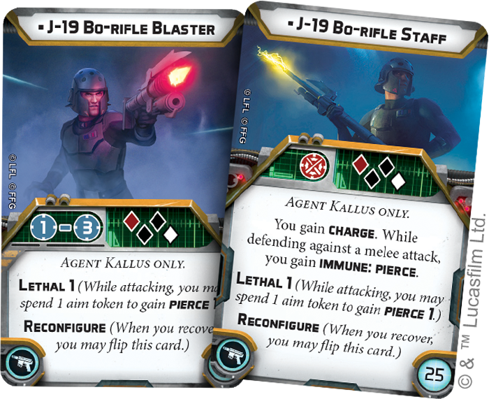 This expansion invites you to put this ruthless agent in command of your Imperial army, beginning with a highly customizable, unpainted hard plastic Agent Kallus miniature that reflects his status as a ruthless Imperial agent. In addition to choosing between two facial expressions for your miniature, you'll also be able to assemble your Agent Kallus with the trademark Imperial Security Bureau helmet or with no helmet at all. Finally, Agent Kallus is deadly up close and with a blaster and you can choose whether he appears with his signature J-19 Bo-Rifle in its blaster or staff forms.