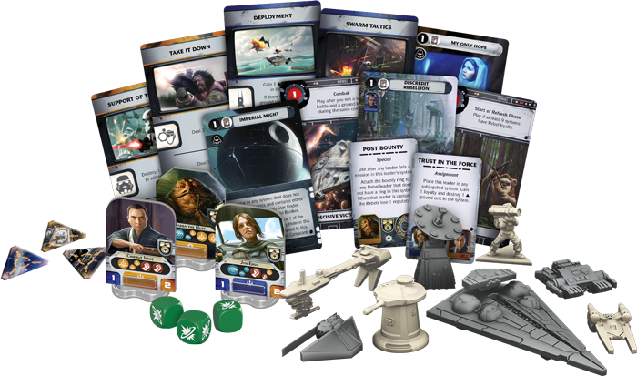 Altogether, Rise of the Empire introduces eight new leaders, thirty-six plastic miniatures, five target markers, two attachment rings, three new dice, and more than one-hundred new cards. You'll find U-wings, TIE Strikers, Nebulon-B frigates, and the Interdictor. You'll gain new ways of subverting your opponent's plans, and you'll discover a whole new chapter in your ongoing Galactic Civil War!