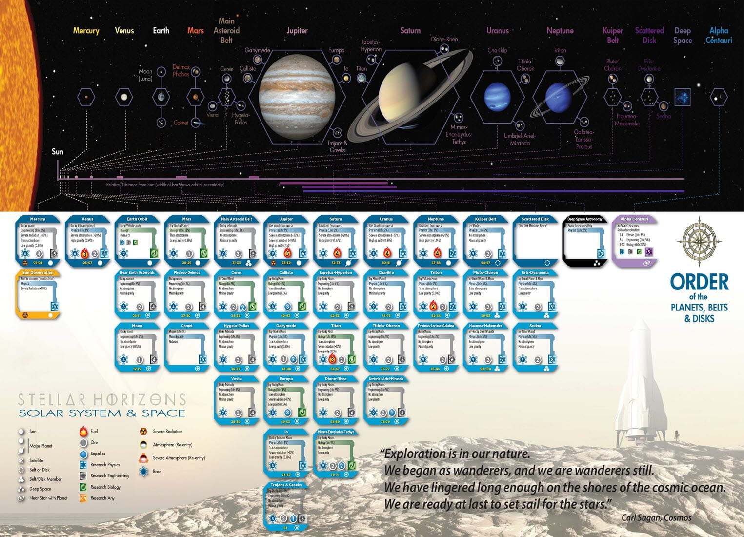 Stellar Horizons is a "build your own space program" game in which you lead one of seven Earth factions to explore and develop our solar system. Designed by a real-life space engineer with a PhD in long-duration spaceflight from MIT, Stellar Horizons is intended to be a plausible representation of the first steps of humanity towards the stars between 2030 and 2169, with each turn representing a year of time. You control your faction's space program, outposts, and fleets spanning across the solar system, although you also have some influence over your faction's politics back home on Earth as space development becomes more important.