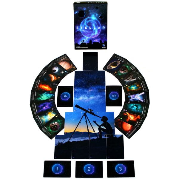In Stellar, you are stargazers, calibrating your telescopes to bring into view celestial objects of various types — planets, moons, asteroids, interstellar clouds, black holes, even satellites — as you create a beautiful display of the night sky!