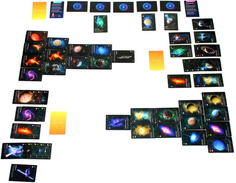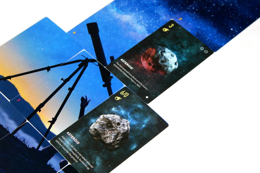 You have eleven rounds to play cards to your telescope and notebook, building a night sky tableau. After that, you'll calculate your points, and the stargazer with the most point wins!