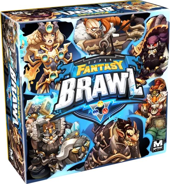 Super Fantasy Brawl is a fun, fast-paced competitive miniatures board game. Players select a team of three champions and combine their unique action cards to create a synergistic action deck. The game is faction-free, so players have their choice of any combination of champions they wish. Each turn, the players use their hand of action cards to maneuver, attack, displace enemies, and claim objectives to score victory points.