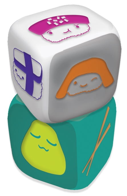 Napełnij taśmę kośćmi ze smakołykami, wybierz 1 z nich, a resztę podaj dalej. Zdobywaj punkty za smakowite kombinacje, których nie powstydziłby się prawdziwy mistrz sushi. Użyj menu, aby przerzucić swoje kości albo pałeczek, aby wymienić się przysmakiem z przeciwnikiem. I koniecznie zostaw sobie miejsce na deser!