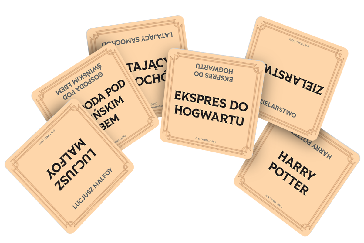 - Tajniacy oferują niezwykłe podejście do zabawy skojarzeniami. Łączenie losowych haseł za pomocą luźnych myśli to nie lada wyzwanie! Choć wszystkie słowa i grafiki widoczne na kartach są bezpośrednio związane ze światem Harry’ego Pottera, szybko przekonacie się, że skojarzenia na ich temat mogą być zupełnie różne. W podpowiedziach możemy próbować odnosić się do konkretnych scen lub cech łączących dane hasła. Ogranicza nas jedynie nasza własna wyobraźnia.