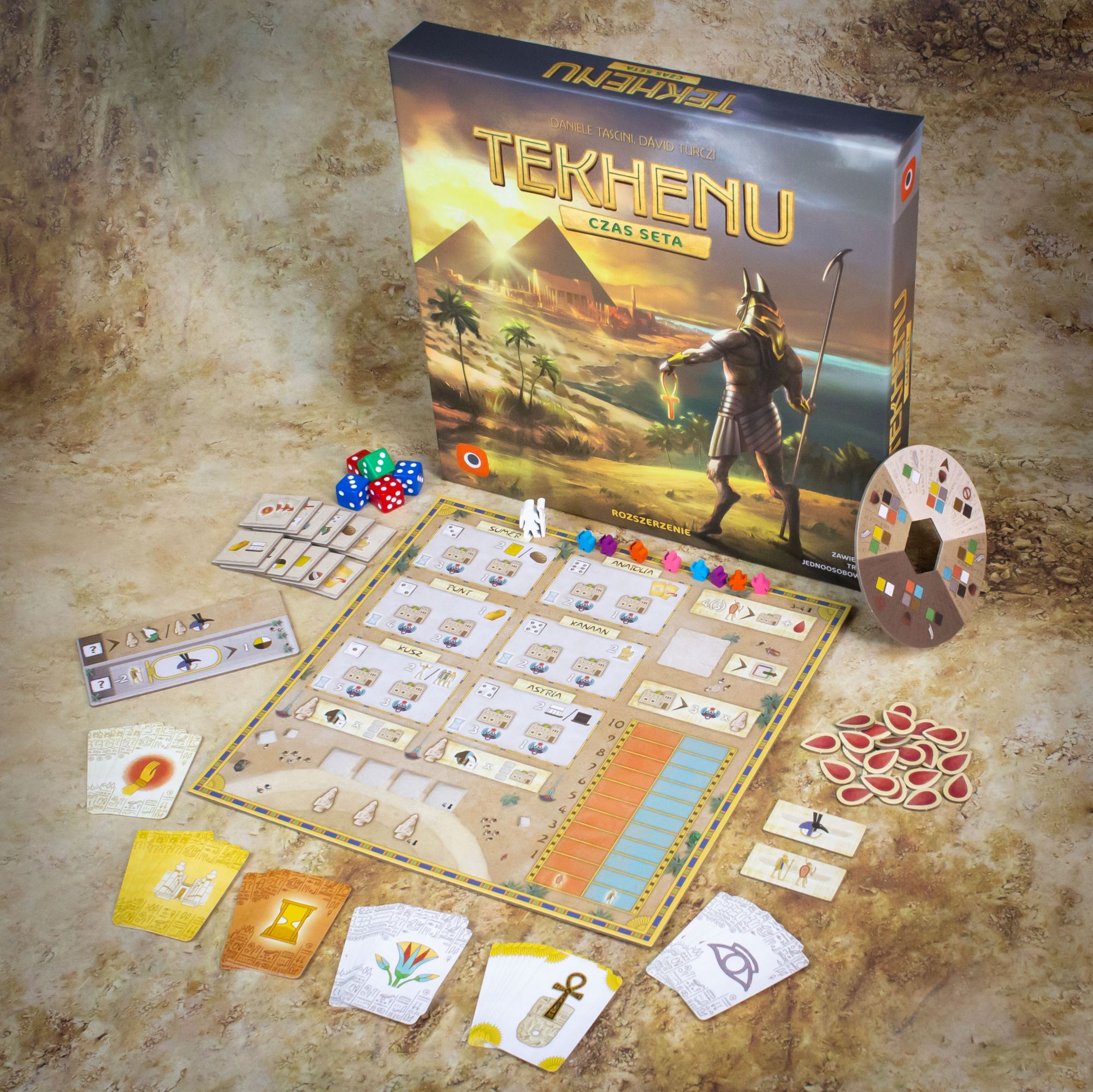 Czas Seta to dodatek do Tekhenu, rozbudowanej, ciężkiej euro gry autorstwa słynnych Daniele’a Tascini’ego (Teotihuacan, Tzolkin, Przygody Marco Polo) i Dávida Turczi’ego (Anachrony, Tawantinsuyu). W czasach, kiedy Egipt urósł do potęgi, jego władcy wyglądają poza swoje granice. Set, bóg wojny, nakazuje wysłać wojska do dalekiej ziemi Kannan i zmierzyć się z potężnym imperium Hetytów. Czas Seta w znaczącym stopniu rozwija elementy gry podstawowej, wprowadzając nową akcję boga Seta wraz z osobną planszą, trzy nowe kolory Kości, a także niespotykane dotąd meeple Wojowników i Kapłanów.