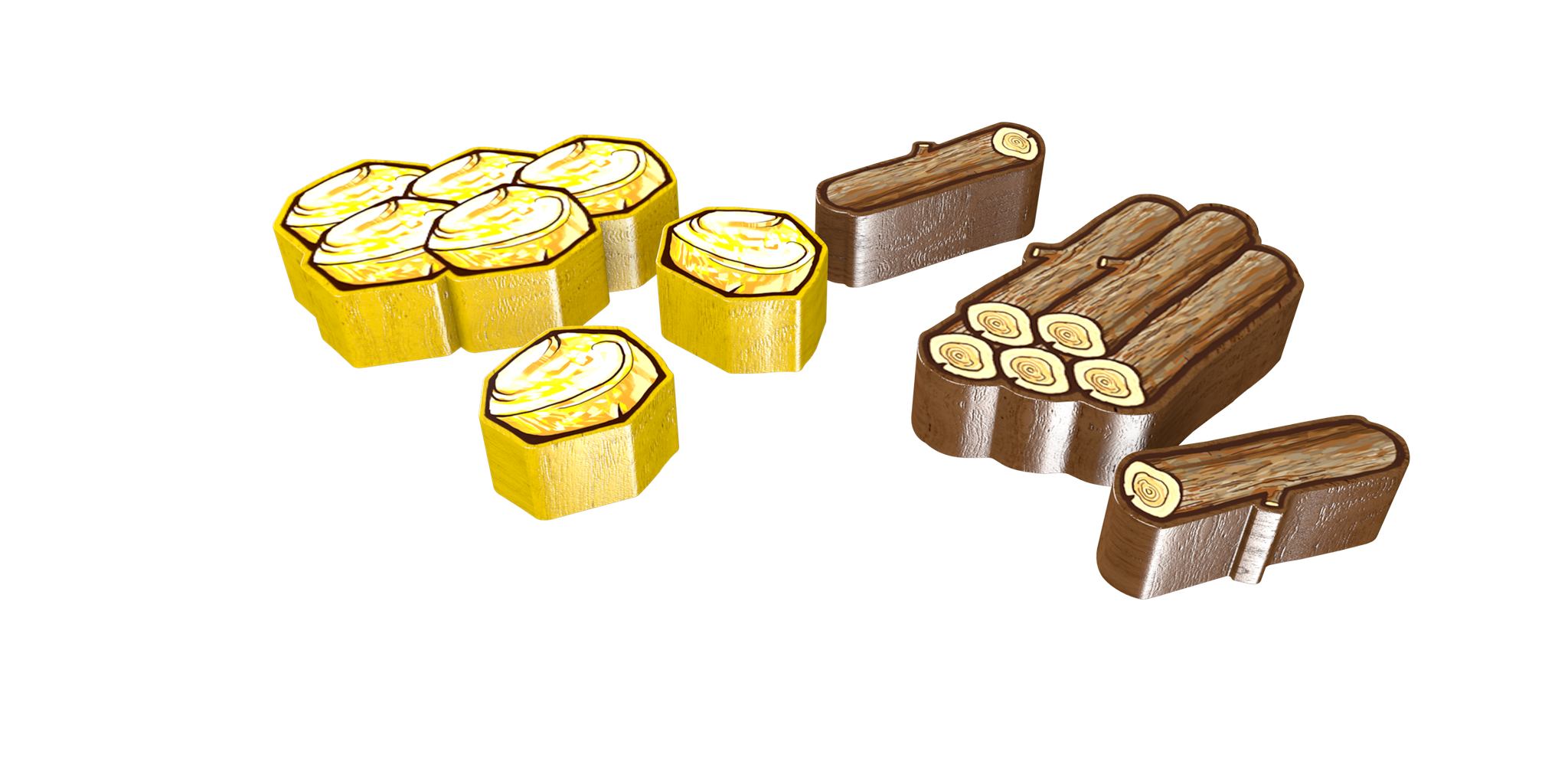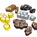 Zestaw przepięknych drewnianych surowców do gry Teotihuacan: City of Gods.