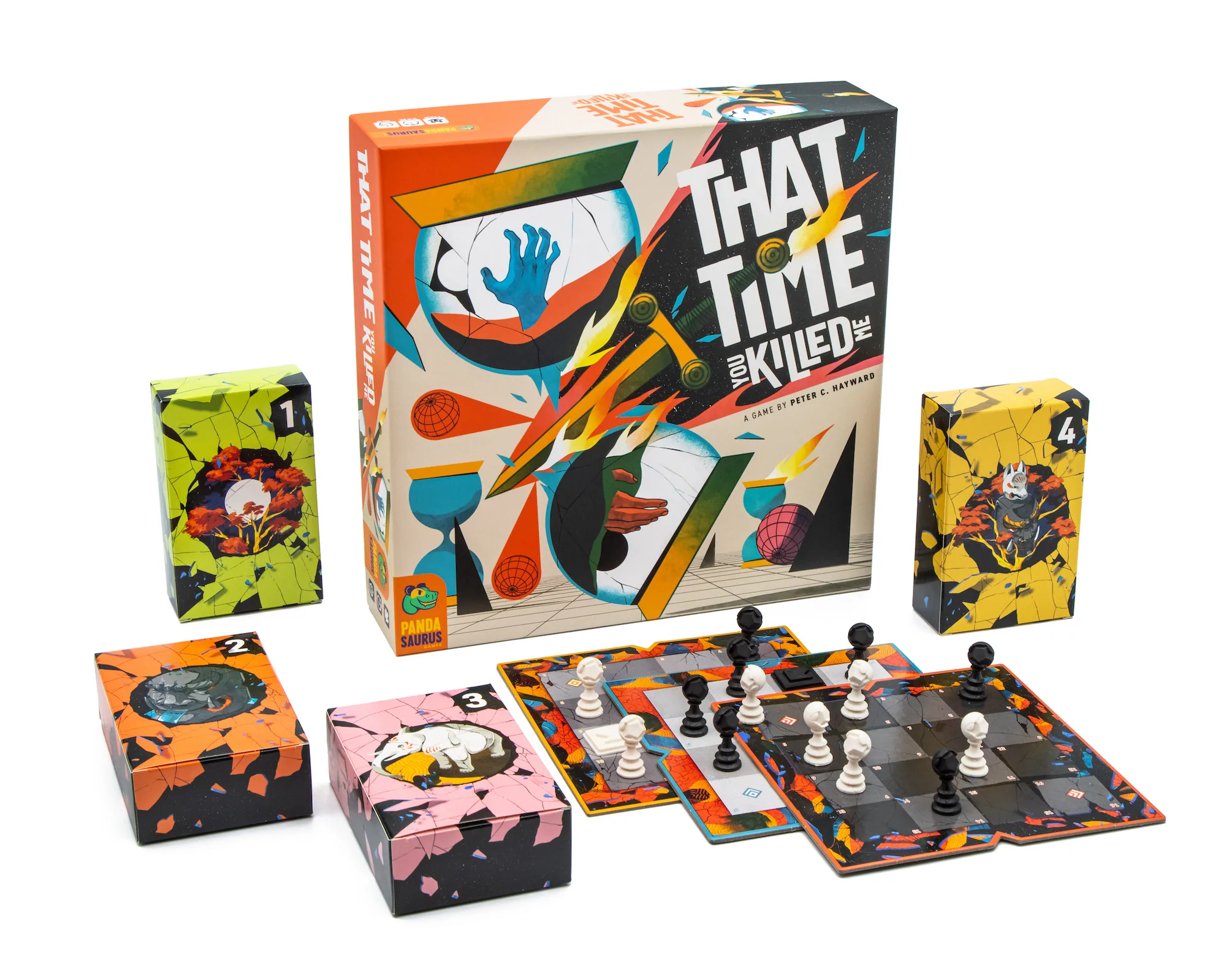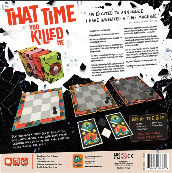 That Time You Killed Me is a narrative game that introduces new scenarios with unique rules and components as you play. As with any game about mucking about across time, you must play through this content in a strict, unalterable order. Play through 4 different Chapters, each with its own rules and components and increasing difficulty!