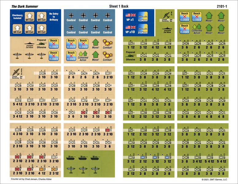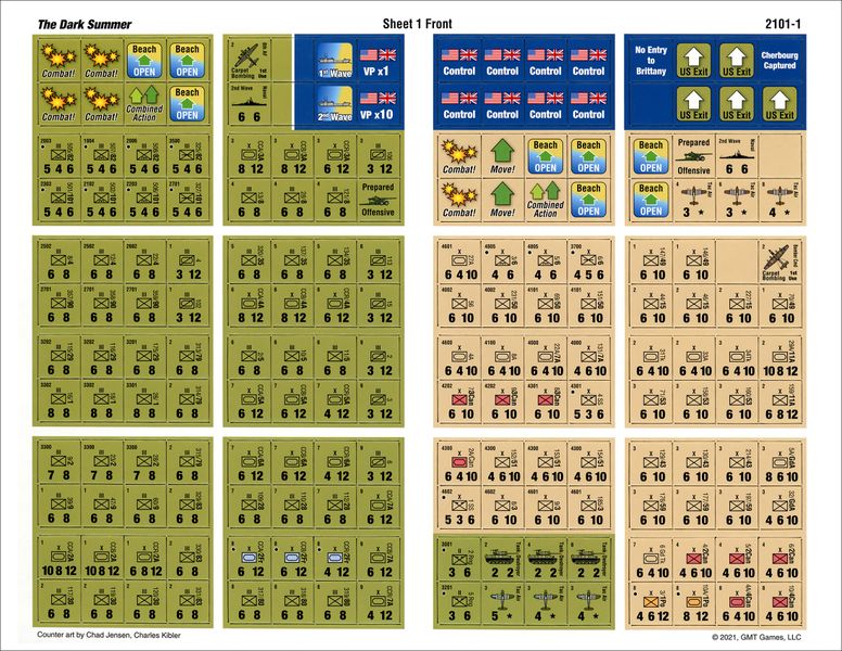 The Dark Summer: Normandy 1944 is the latest in Ted S. Raicer's WWII operational series that began with The Dark Valley: The East Front Campaign 1941-45. The game uses a chit-pull activation system that determines both the order and type of each sides' actions during the game's ten action-packed turns, covering June 6 to August 21, 1944.