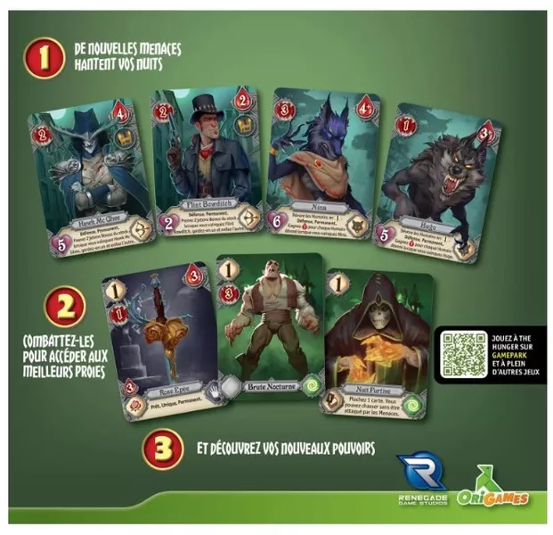 The Hunger: High Stakes expansion features exciting new twists for hungry vampires thanks to an event deck that creates random starting options. What's more, vampires can now attack, allowing them to defeat new threats, improve their hunting abilities, and take down other vampires.